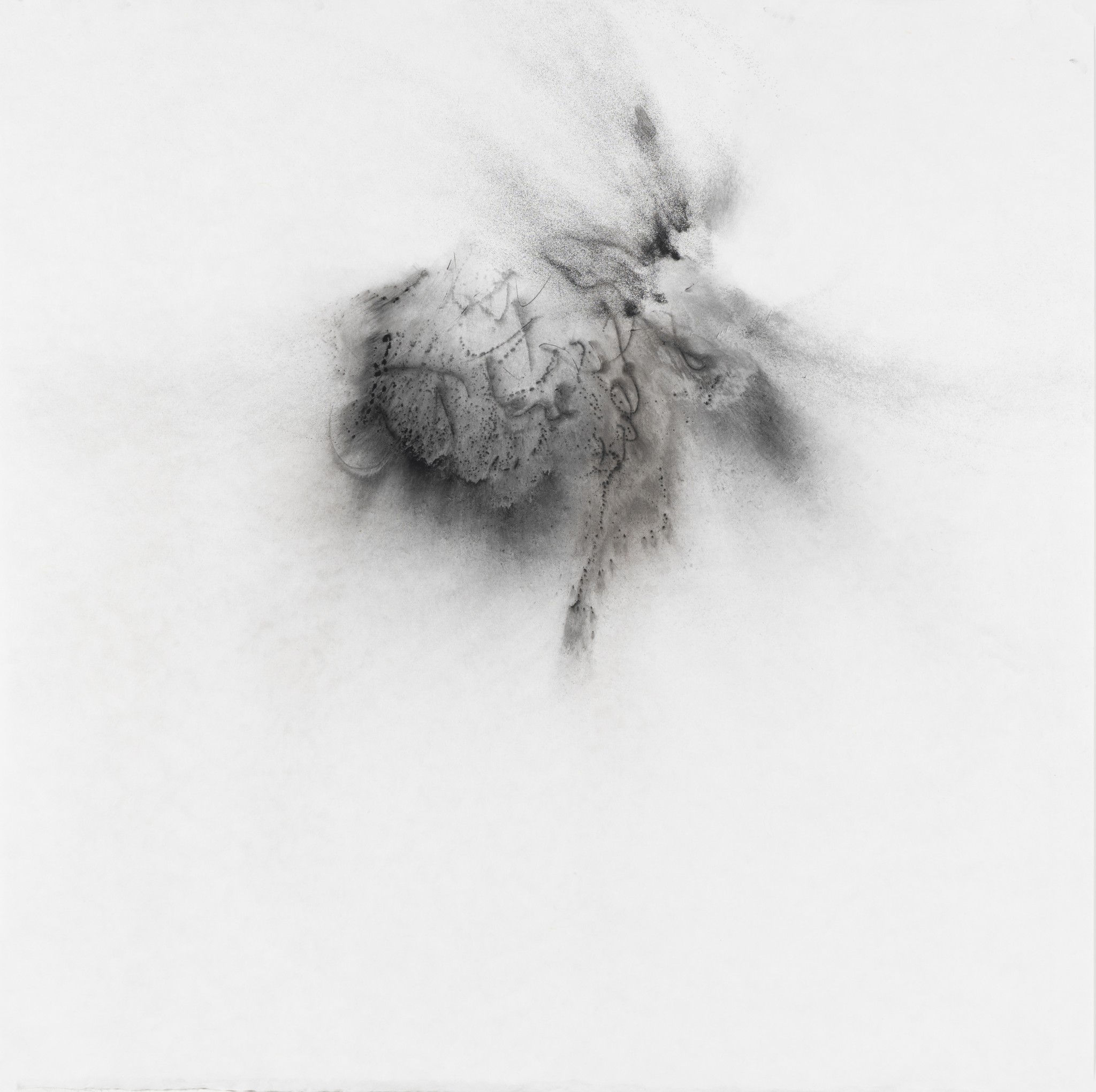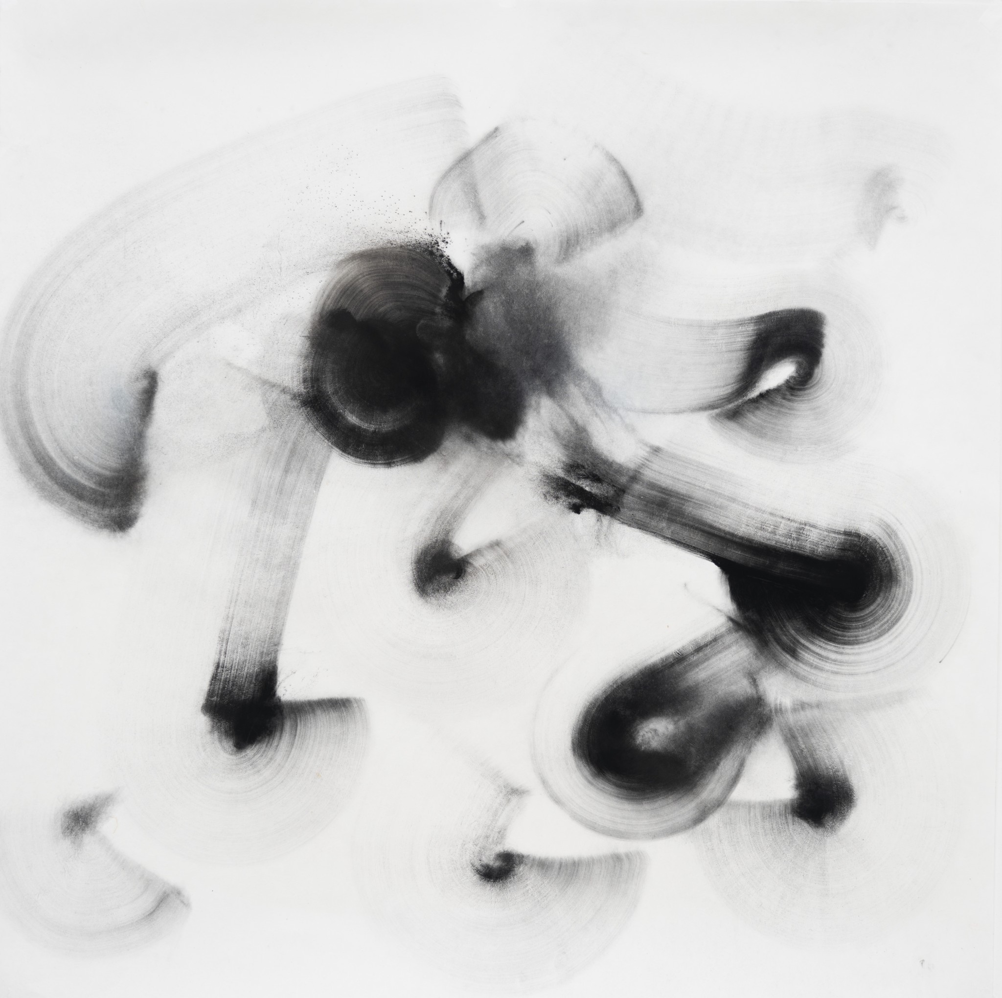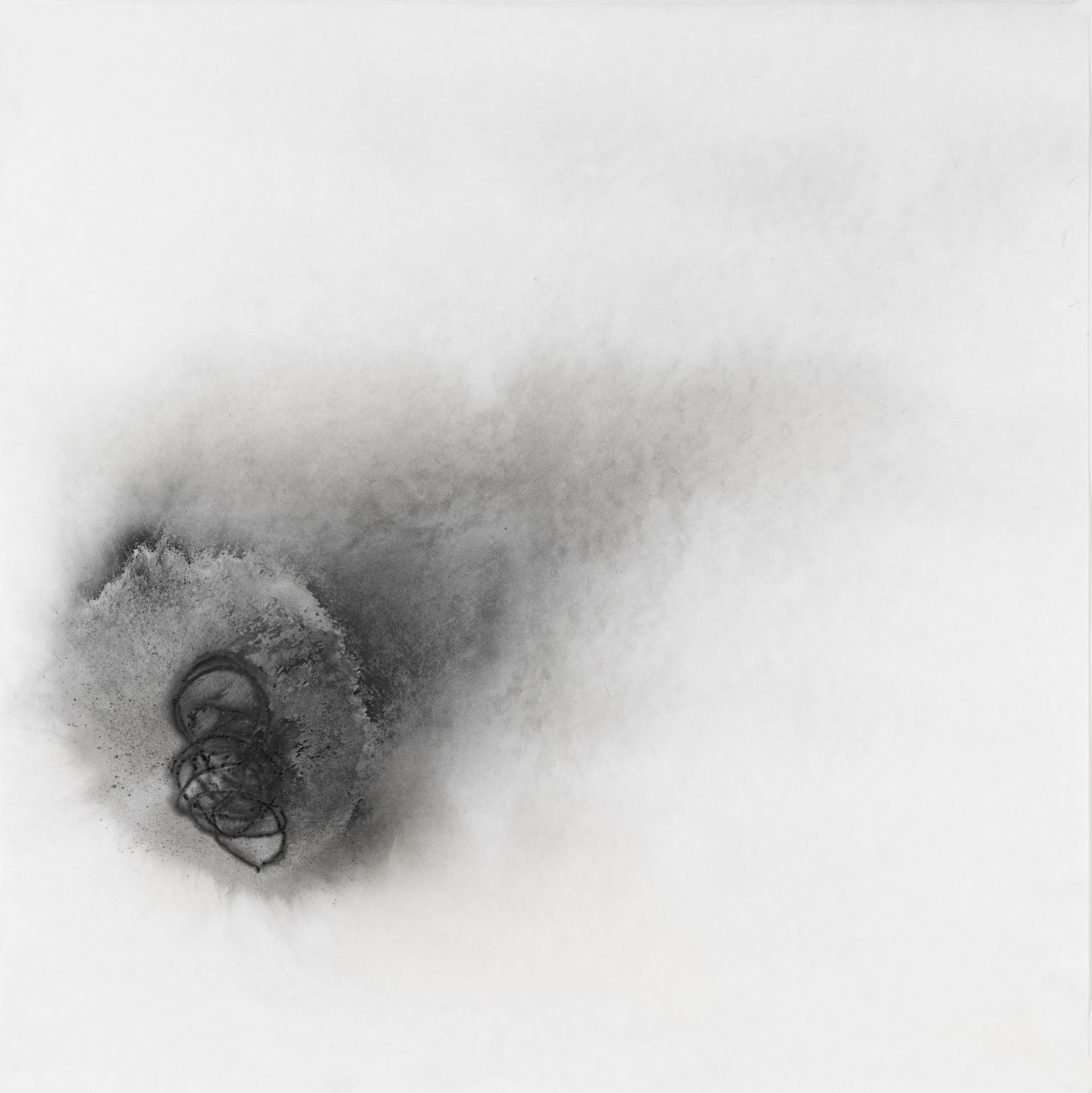 ...... <파우더 드로잉> 연작 역시 물질에 관한 연구이다. 그는 먹의 입자를 구성하는 잿가루 대신 토너(잉크 파우더)를 선택한다. 붓으로 그려지면서 파우더가 흩뿌려지는 상태에서 일견 파우더가 멈춘 듯하지만, 대기의 여러 상태로 인해 미세히 움직인다. 작가는 이를 ‘순간’ 고착시킨다. 찰나로 포착된 입자들은 형상이 되며 공간을 점유한다. 그러나 이 요소들은 대기의 여러 상태를 통해 원래의 상태에서 변화된다. 그 변화는 우리의 눈으로 포착할 수 있고, 그 차이가 너무 미세하여 포착되지 않을 수도 있다. 시작과 끝은 ‘대기’의 상태에 따라 다른 차이를 지닌다. 이 연작은 ‘물’ 없는 입자, 즉 ‘파우더’를 통해 물질의 점도와 흐름 그리고 저항을 화면 위에 드러낸다. 작가의 행위와 리듬, 보이지 않는 대기의 입자들과의 관계를 통해 촉각과 시각의 구성에 관한 회화적 형식을 창출한다. 그는 붓, 종이, 인장 등의 매체의 물질성과 가루 입자의 잠재성을 심층적으로 다루면서, 회화를 물질적 표현을 넘어 비물질적 파장을 전달하는 개념적 언어로 새롭게 정의한다. 그의 ‘몸’이 그 사이로 끼어든다. 이는 실재하는 감각적 강도와 리듬을 중심으로 화면 위의 물질과 보이지 않는 물질들을 교차하여 물질과 이미지의 경계를 허문다.
