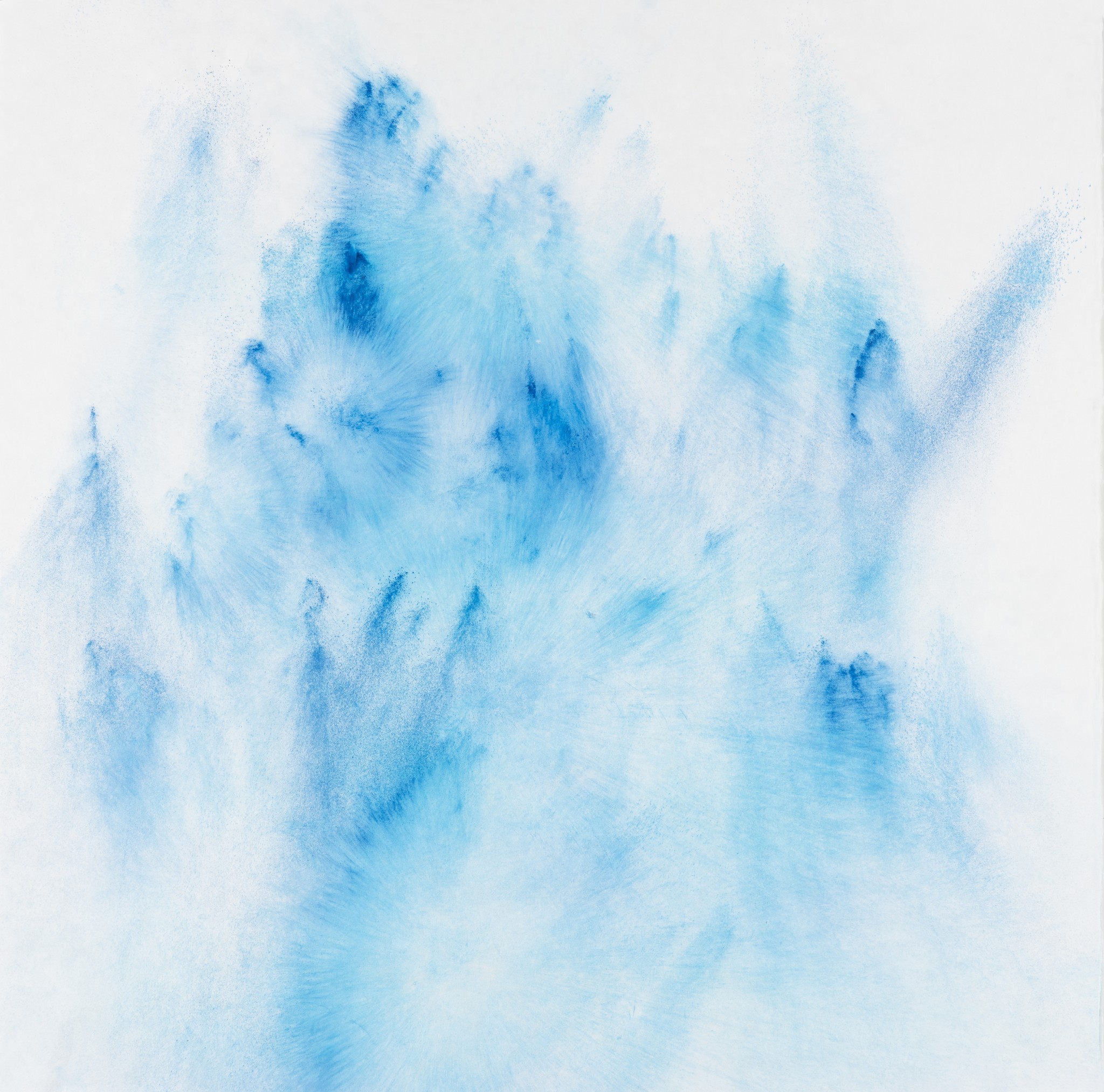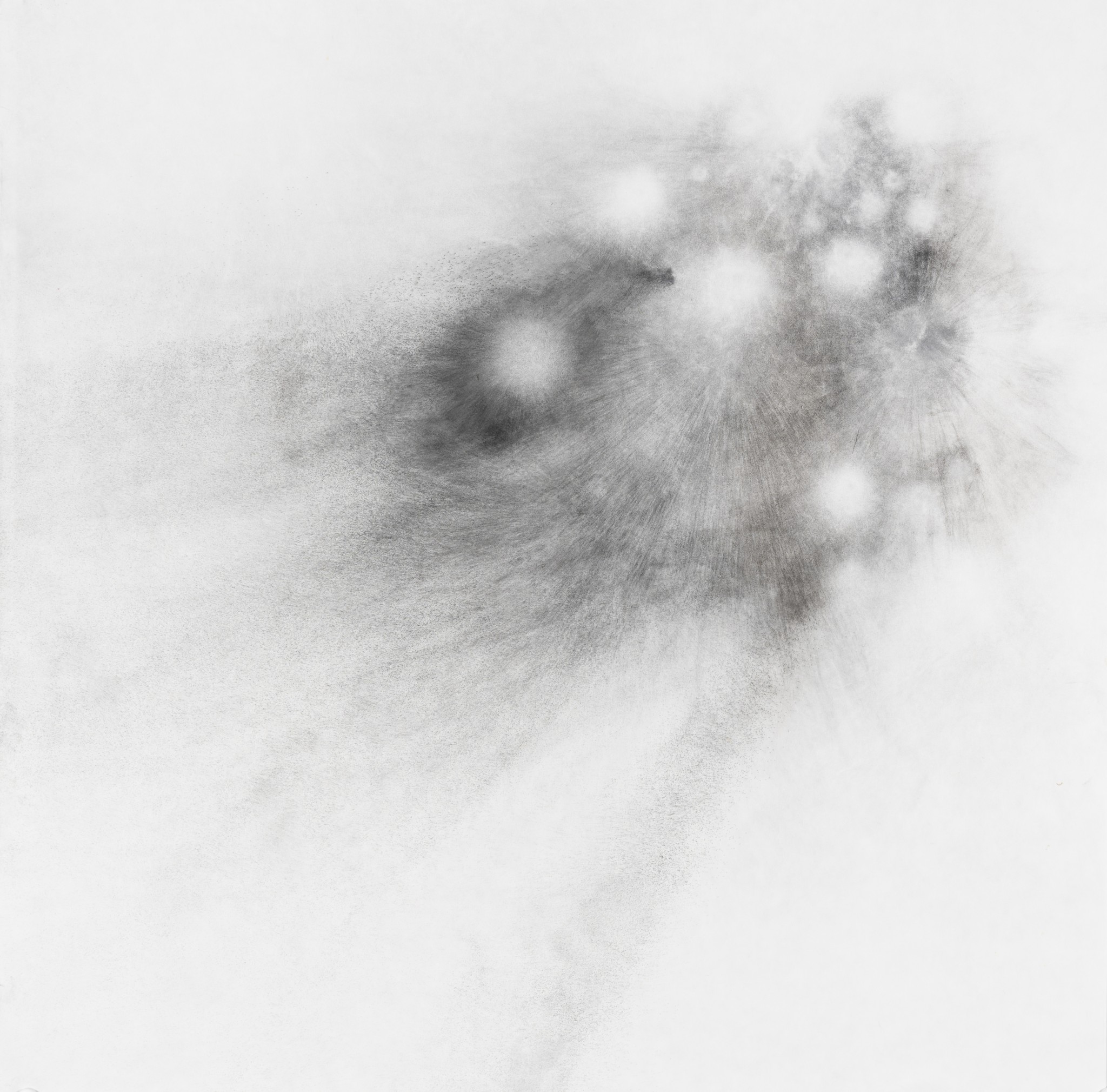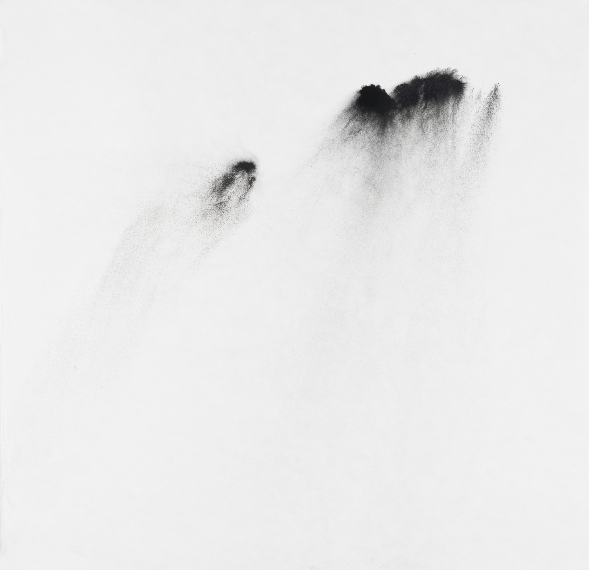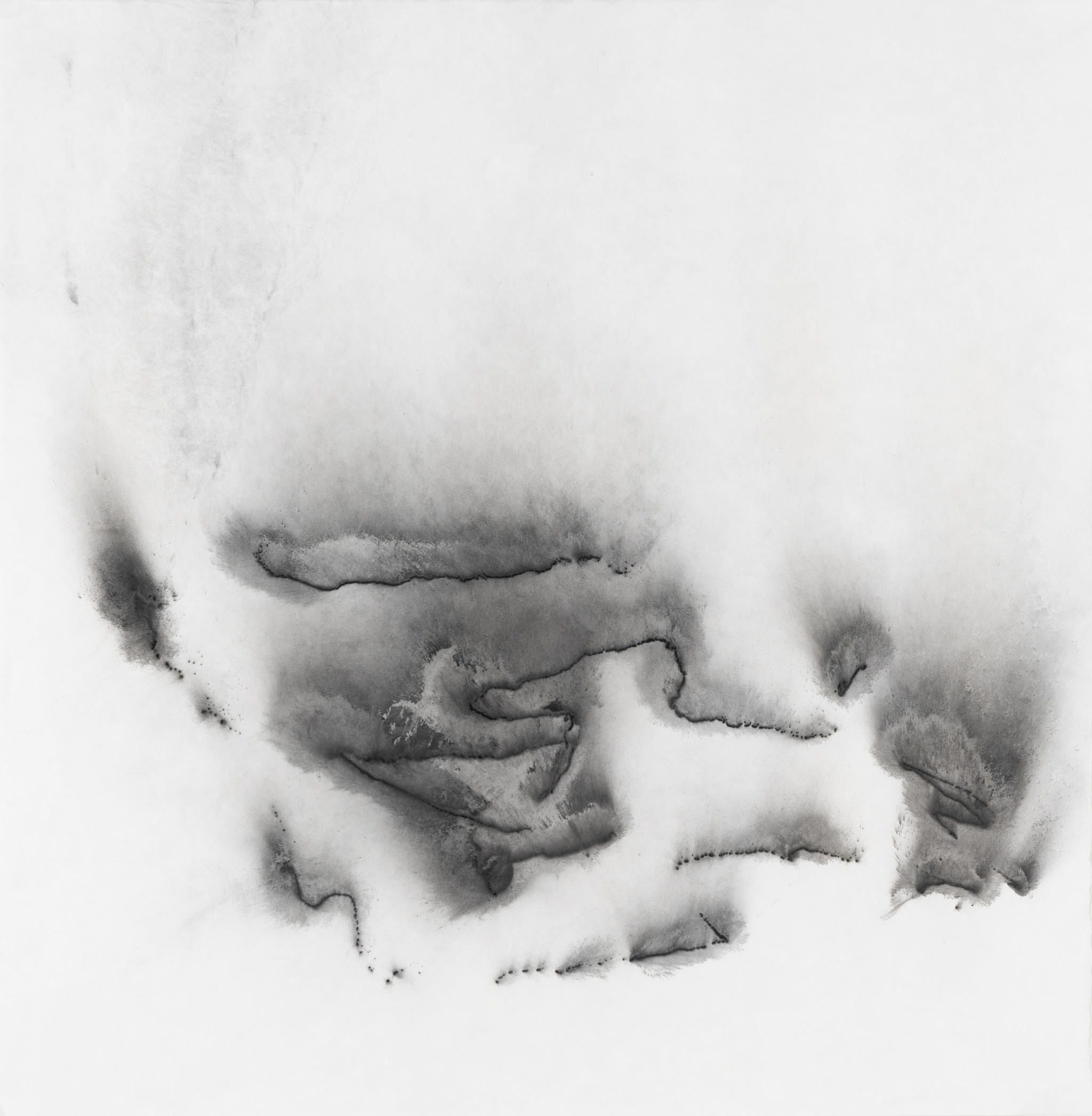 ...... <파우더 드로잉> 연작 역시 물질에 관한 연구이다. 그는 먹의 입자를 구성하는 잿가루 대신 토너(잉크 파우더)를 선택한다. 붓으로 그려지면서 파우더가 흩뿌려지는 상태에서 일견 파우더가 멈춘 듯하지만, 대기의 여러 상태로 인해 미세히 움직인다. 작가는 이를 ‘순간’ 고착시킨다. 찰나로 포착된 입자들은 형상이 되며 공간을 점유한다. 그러나 이 요소들은 대기의 여러 상태를 통해 원래의 상태에서 변화된다. 그 변화는 우리의 눈으로 포착할 수 있고, 그 차이가 너무 미세하여 포착되지 않을 수도 있다. 시작과 끝은 ‘대기’의 상태에 따라 다른 차이를 지닌다. 이 연작은 ‘물’ 없는 입자, 즉 ‘파우더’를 통해 물질의 점도와 흐름 그리고 저항을 화면 위에 드러낸다. 작가의 행위와 리듬, 보이지 않는 대기의 입자들과의 관계를 통해 촉각과 시각의 구성에 관한 회화적 형식을 창출한다. 그는 붓, 종이, 인장 등의 매체의 물질성과 가루 입자의 잠재성을 심층적으로 다루면서, 회화를 물질적 표현을 넘어 비물질적 파장을 전달하는 개념적 언어로 새롭게 정의한다. 그의 ‘몸’이 그 사이로 끼어든다. 이는 실재하는 감각적 강도와 리듬을 중심으로 화면 위의 물질과 보이지 않는 물질들을 교차하여 물질과 이미지의 경계를 허문다.